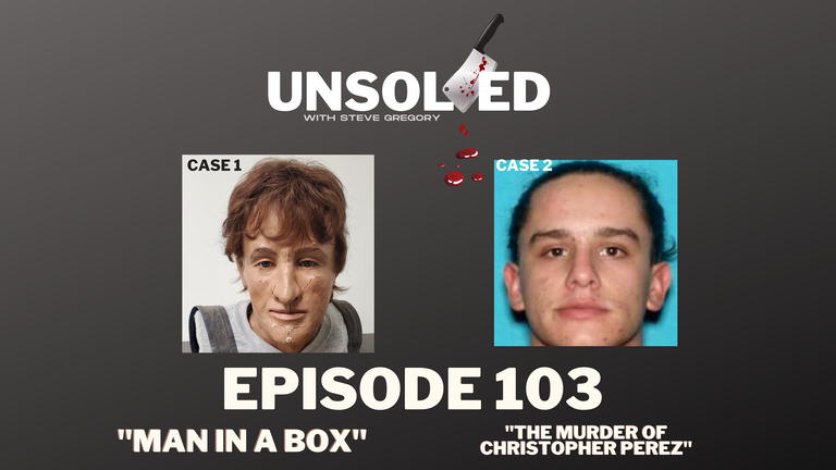 Episode 103 of "Unsolved with Steve Gregory" delves into the "Man in a Box" & "The Murder of Christopher Perez"