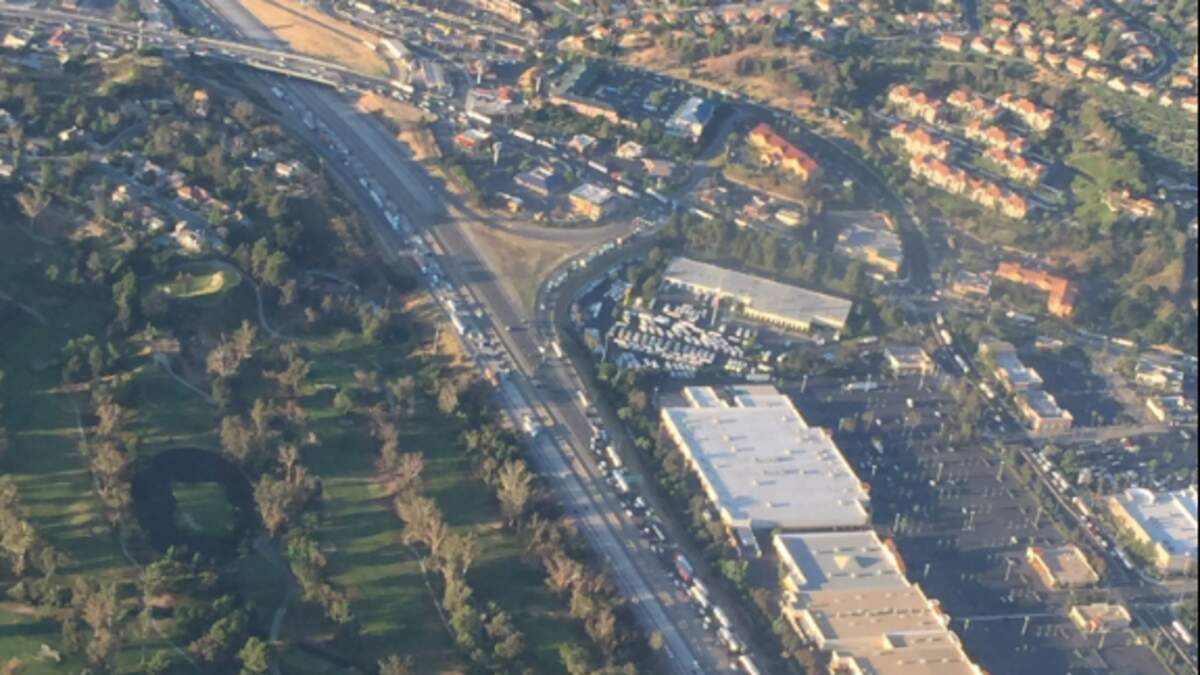 The California Highway Patrol says the crash occurred early Tuesday morning near Santa Clarita. Jeff Baugh and the KFI in the Sky took photos of the backup which showed commuter traffic backed up for miles.