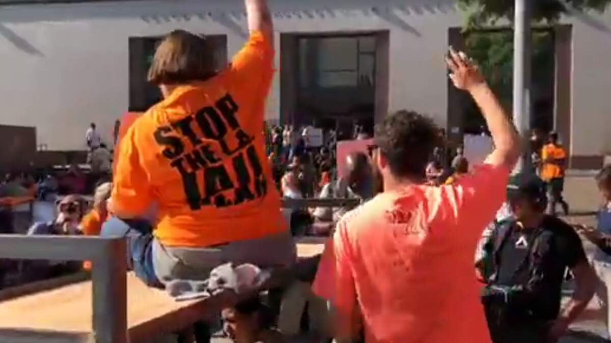 LOS ANGELES (CNS) - Dozens of protesters rallied downtown today to urge the Board of Supervisors not to spend money on new jail construction.