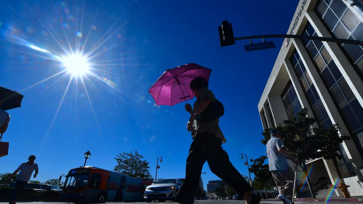 The NWS forecast sunny skies today and highs of 81 on Mount Wilson; 82 at LAX; 83 in Avalon; 86 in Palmdale and Lancaster; 87 in Long Beach; 90 in Downtown L.A.; 91 in San Gabriel; 92 in Burbank; 93 in Pasadena and Saugus; and 96 in Woodland Hills. NWS meteorologist Rich Theompson said the normal temperature for this time of the year is 77 in Downtown, 13 degrees lower than today; 78 in Burbank, or 14 degrees less than today; and around 78 in Woodland Hills, or 18 degrees below today's high.