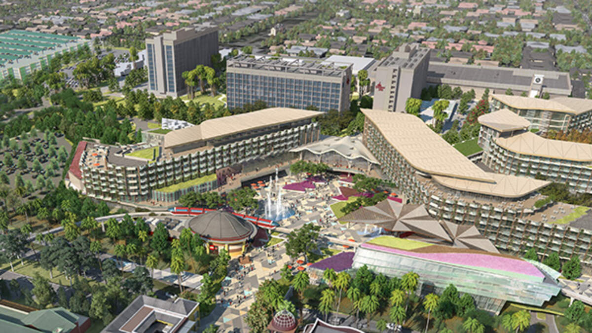 A rendering of the proposed Disneyland hotel is shown in the Downtown Disney District (Photo Credit: Disney)