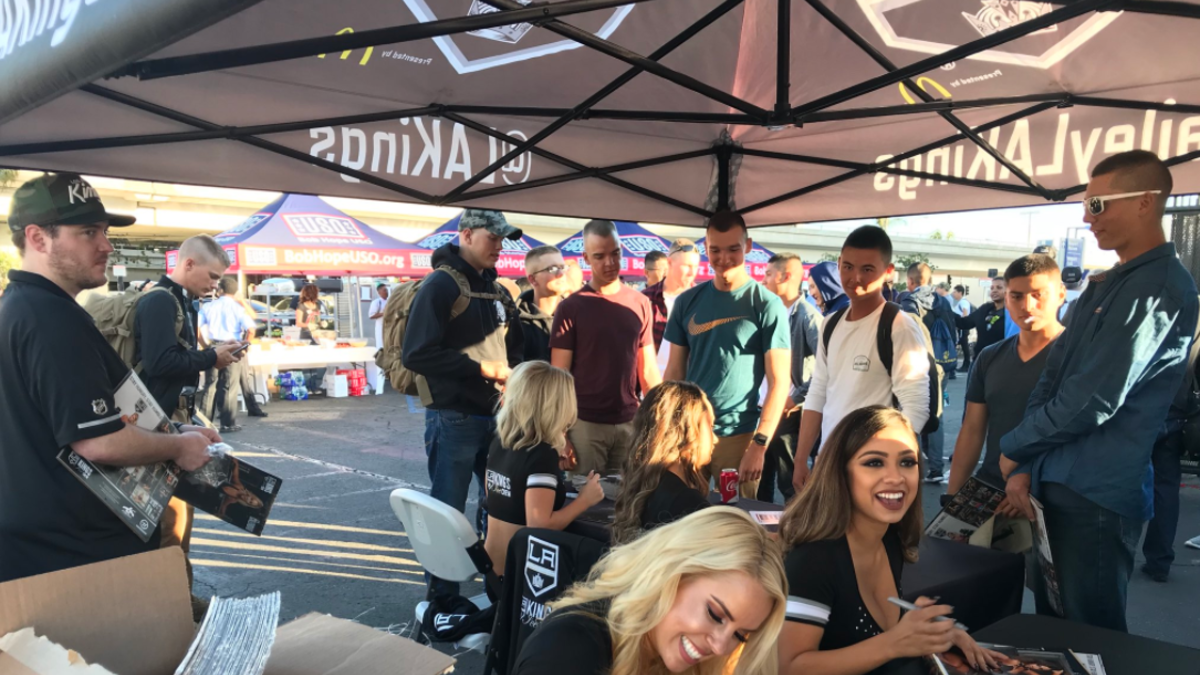 Players from the Chargers and Kings as well as cheerleaders from both teams were out there to help serve the troops the Thanksgiving meal. Workers from Activision also took the day off to help serve up meals. The food was prepared by some of the nearby hotels around LAX.