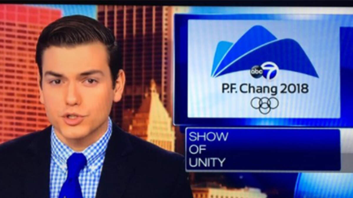 A TV station in Chicago had to apologize after they inadvertently aired an Olympics graphic that said "P.F. Chang 2018," instead of Pyeongchang, the host city of the 2018 Winter Olympics.