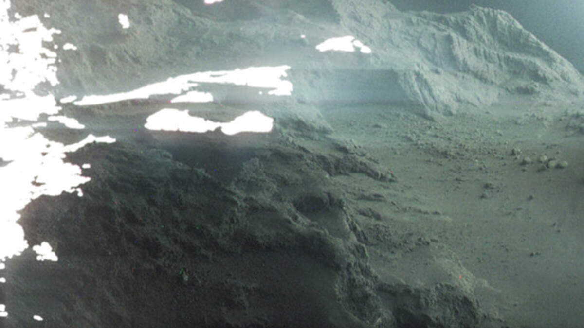 The Rosetta spacecraft may have crashed in 2016, but it still has secrets to share. The European Space Agency (ESA) recently released breathtaking images that the craft took in 2014 as it orbited just 16 miles above the surface of Comet 67P. The image was put together by amateur astronomer Jacint Roger Perez using three separate photos taken by Rosetta during the flyby.