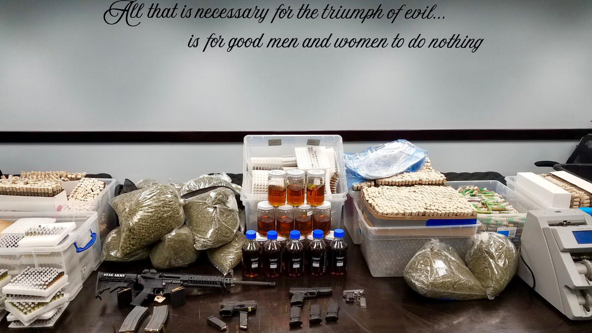 Daniel Ontiveros, 24, and three other men were arrested at the location, where investigators seized marijuana, concentrated cannabis oil, guns -- including an AR15 rifle -- and about $150,000 in cash, Lt. Andrew Mathes told reporters at an afternoon news conference at the LAPD's Central Station.