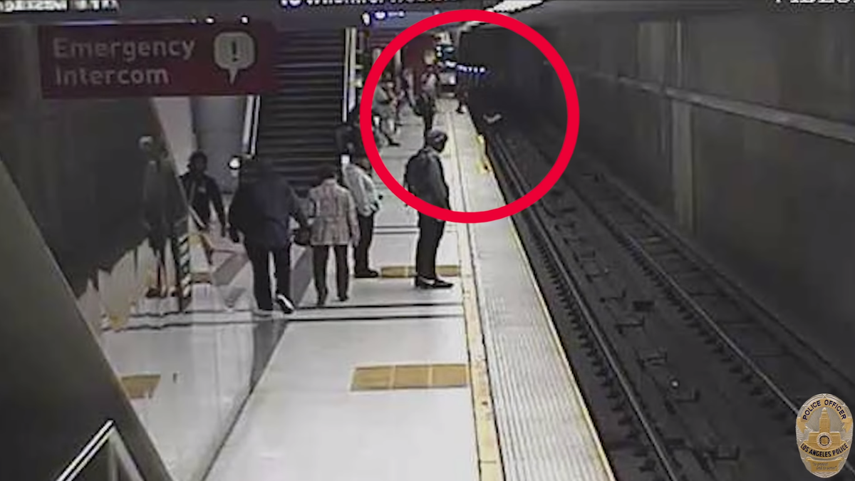 The LAPD released footage of the incident on Monday that showed two people falling onto the tracks and making it back on the platform before a train arrived in the station.