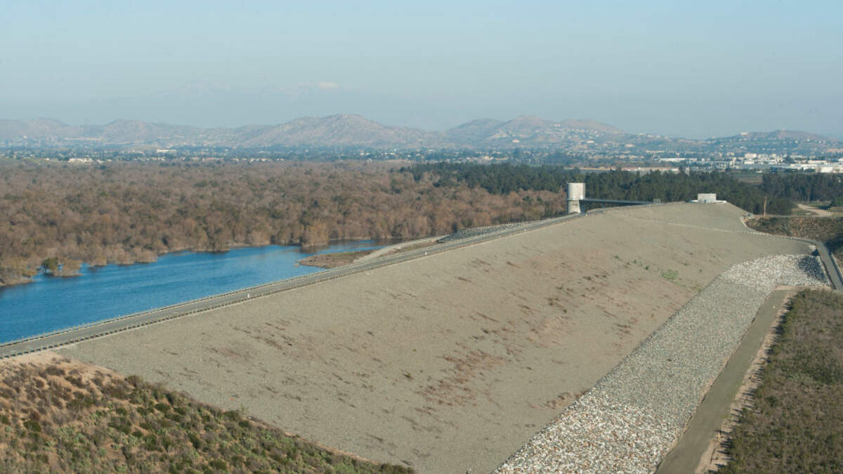 Located beside the 91 Freeway, on the border of Riverside and Orange counties, the dam contains little to no water for much of the year. During periods of heavy rain, however, the structure is intended to collect water and prevent flooding along the Santa Ana River.
