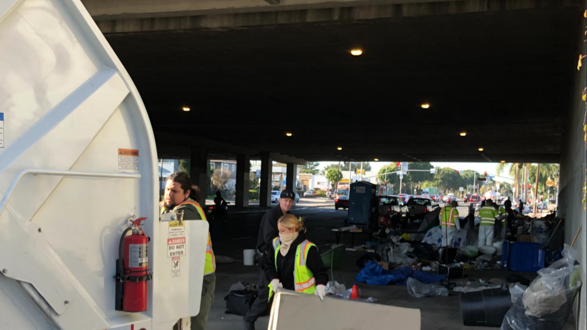 Dump trucks, homeless service workers and police have been cleaning up encampments