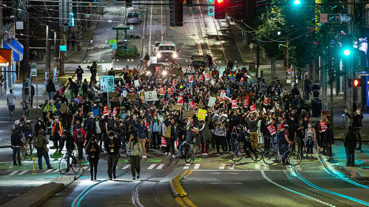 A group of protesters in Seattle, led by Councilwoman Kshama Sawant, marched on City Hall, demanding that Mayor Jenny Durkan defund the police department or resign from her position. Just after 9 p.m. local time, Sawant unlocked to the doors to the building and let the protest stream inside. They spent about an hour listening to speeches before marching back to Cal Anderson Park.
