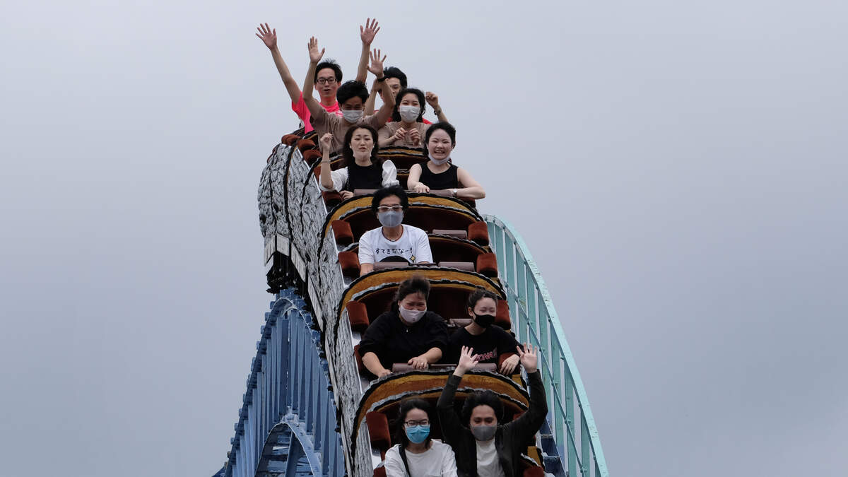 Could you sit silently on a rollercoaster? Well that's what theme park goers are being asked to do in Japan to help limit the spread of COVID-19. A viral video from Japanese park operator Fujikyuko shows two well dressed men with masks on, silently riding a rollercoaster as it flies down hills and roars over big sweeping curves.