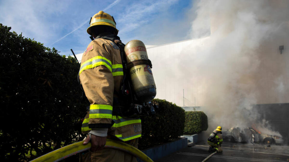 Publicly available social media posts show that the person who set fire to the patrol car parked at the loading dock of the Santa Monica Civic Center was wearing certain clothing and accessories, had an American flag bandana over his face, and had a distinctive tattoo of a rifle on his left arm, according to an affidavit in the case filed in Los Angeles federal court.