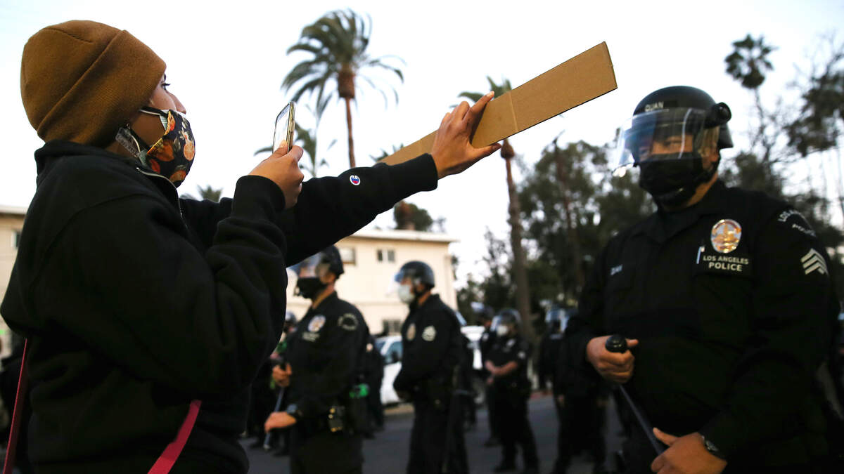 The protests came about two weeks after a report commissioned by the City Council found that the Los Angeles Police Department mishandled various aspects of last spring's mass demonstrations sparked by the May 25 killing of George Floyd in Minneapolis.