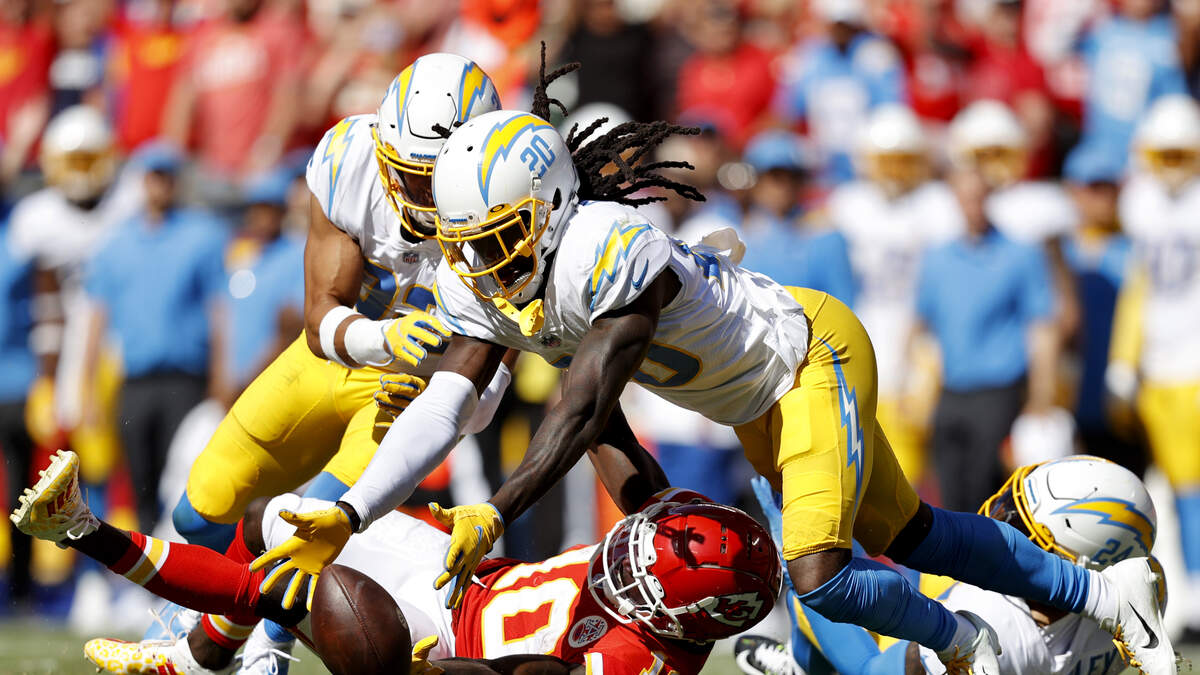 The Chargers took a 14-0 lead on touchdown passes by Herbert on their third and fourth possessions, capitalizing on two fumbles forced by Tevaughn Campbell that were recovered by fellow cornerback Michael Davis.