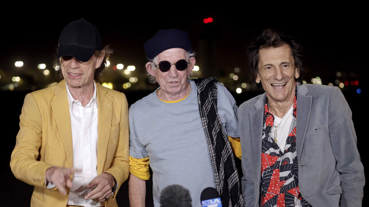 'The Stones' touched down at a very windy Burbank-Hollywood Airport, Monday evening. Mick Jagger, Keith Richards, and Ron Wood greeted reporters from the doorway of their chartered 757 Delta plane, before ultimately responding to questions from the media.
