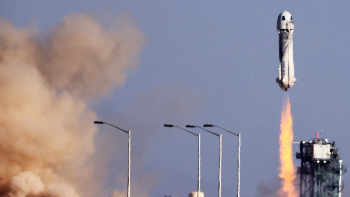 The flight lifted off at about 7:50 a.m. Pacific time from Blue Origin's Launch Site One and hit its apex at around 300,000 feet. The crew experienced about four minutes of weightlessness before floating back to Earth.
