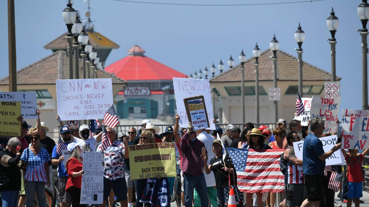 Later in the afternoon, the City of Huntington Beach announced it would seek an injunction against the Governor for closing the beaches. Today, down by the Huntington Beach pier hundreds of protesters are marching on PCH to protest Gavin's decision.