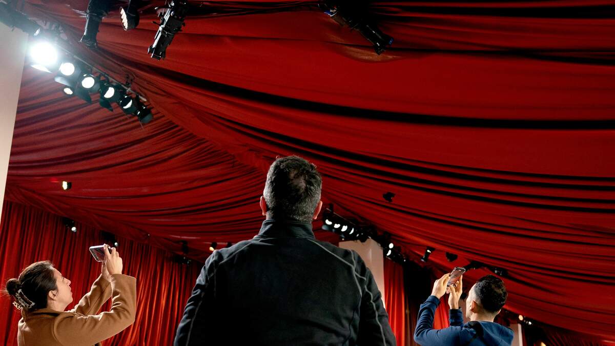 - According to ABC7, puddles could be seen forming on the red drapes covering the world's biggest carpet as the atmospheric rivers began to cause more rain in [SoCal].