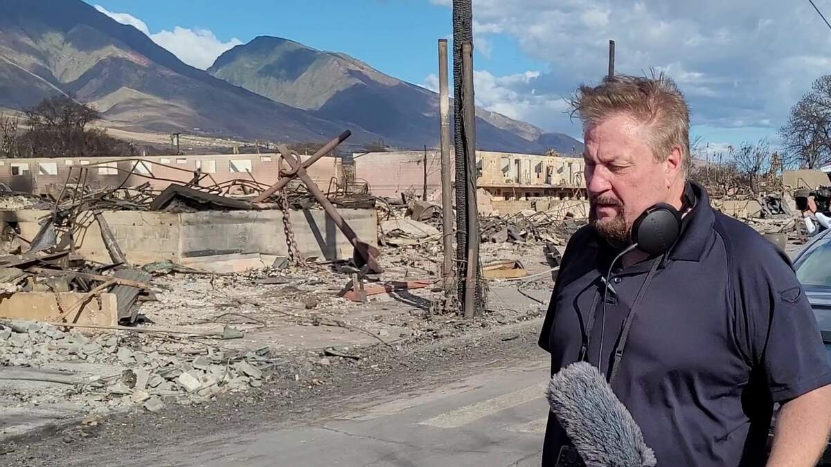 I have been at the scene of hundreds of wildfires but this one was different. Somehow, knowing the cultural sensitivities related to Lahaina and the island made this more haunting. Our group was very respectful during this escorted tour. We followed every instruction given by FEMA officials and the Maui Police Department. The group included ABC's Whit Johnson and NBC's Miguel Almaguer, plus their crews. Listen to the three of us interview FEMA Task Force Leader Frank Taylor inside the impact zone.